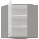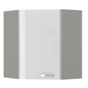 Horná rohová skrinka široká 60 cm. Korpus sivý a dvierka bielé vysoký lesk.